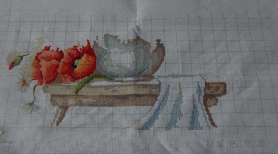 Zaczęłam haft z czasopisma:"Igłą malowane" -"Maki w wazonie" z przeznaczeniem na prezent:)Mam już tyle: